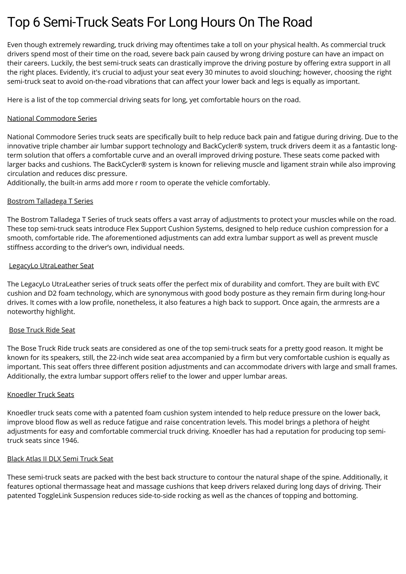 Top 6 Semi-Truck Seats For Long Hours On The Road