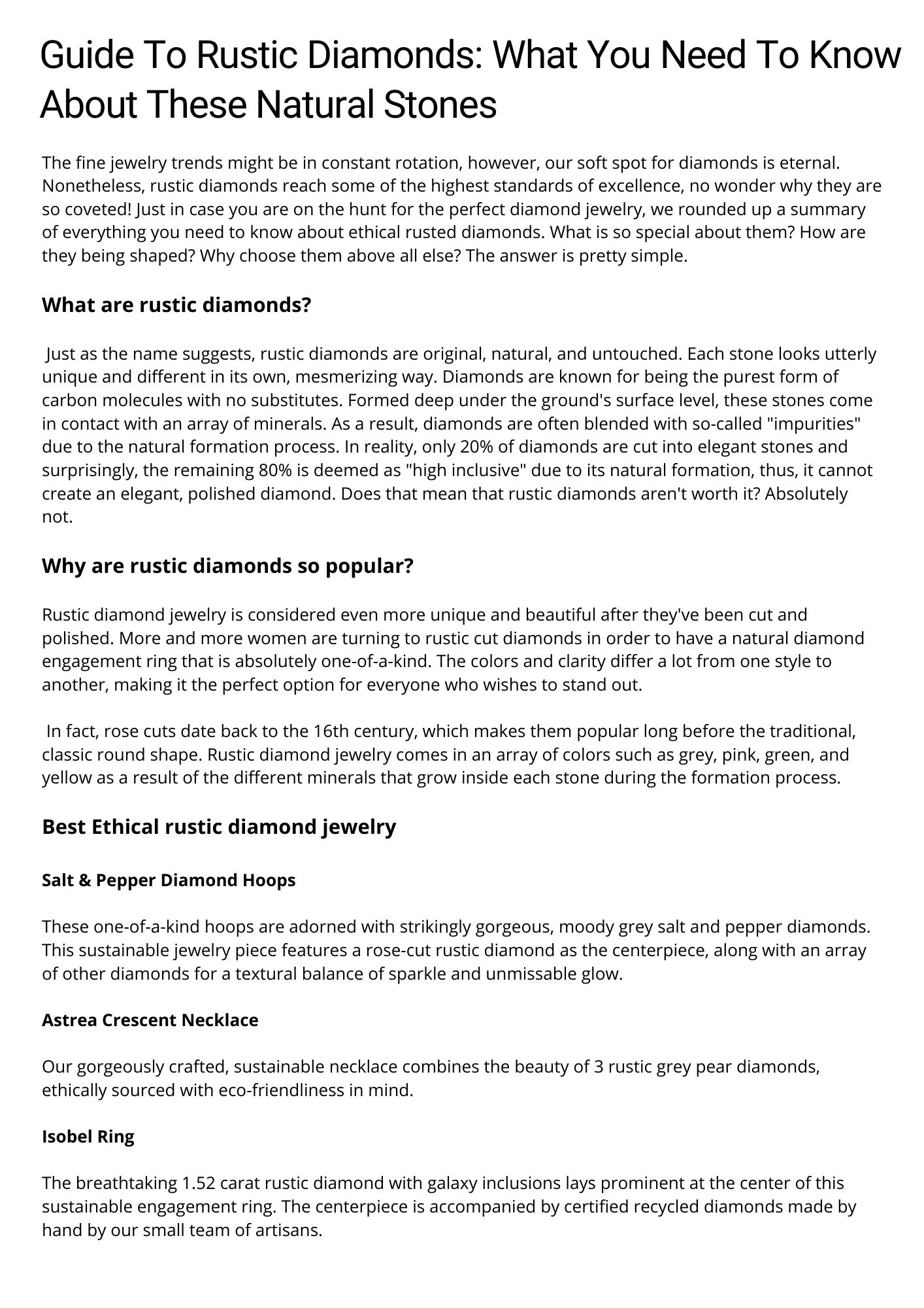 Guide To Rustic Diamonds: What You Need To Know About These Natural Stones